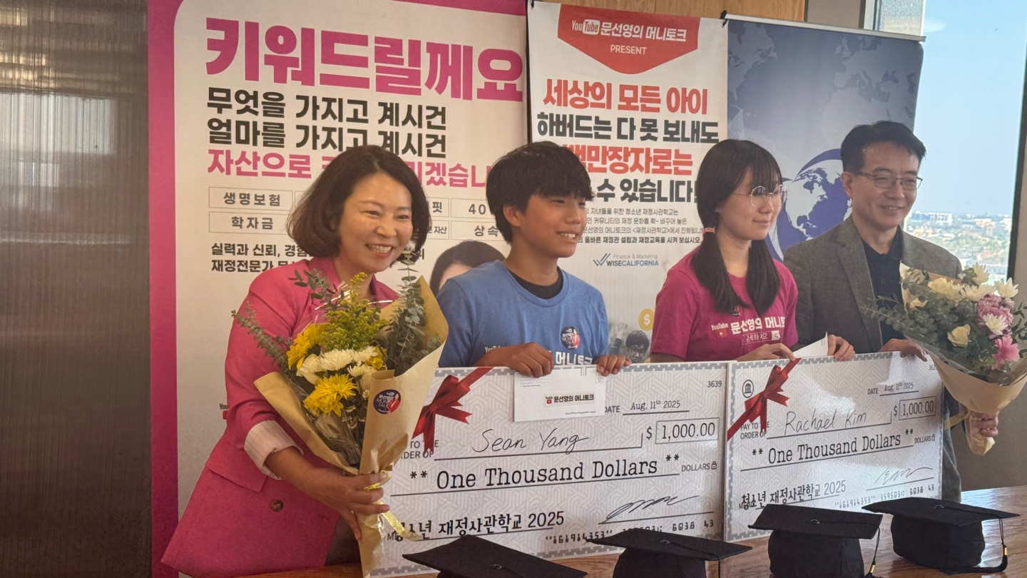 문선영 대표는 “모든 학생들에게 장학금을 주고 싶은 마음이지만, 이번 수상자는 수업 참여도뿐 아니라 프로그램을 정확히 이해하고 활용 계획을 세운 점에서 높은 평가를 받았다”며 “천 달러 장학금이 학비, 가계 보탬, 용돈을 넘어 장기적으로 시간·복리·투자의 원칙을 실천하고 백만 달러를 만드는 종잣돈이 되길 바란다”고 전했다.