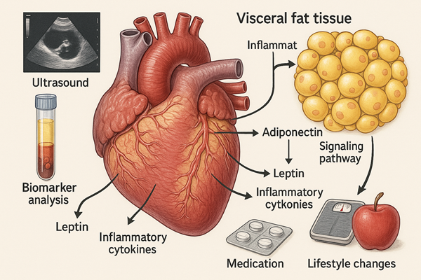 아디포카인은 지방 조직에서 분비되는 신호 분자로 심장과 신장을 보호한다. 하지만, 과도한 내부 지방 축적이 발생하면 지방 조직의 생물학적 특성이 병리적 전환을 일으켜, 심근에 염증, 스트레스, 흉터를 일으키는 병리적 아디포카인을 생산하게 된다.