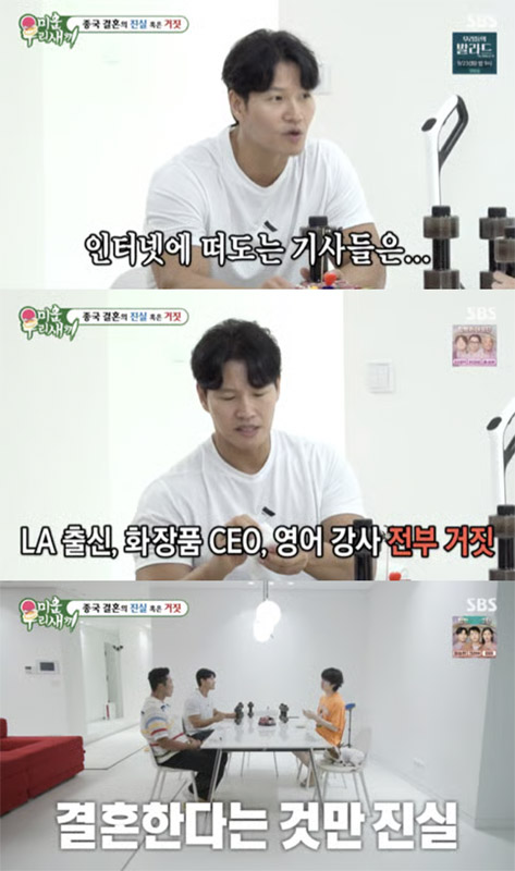 이어 김희철은 인터넷상에서 떠도는 김종국의 예비 신부 관련 추측 기사에 대해 질문했다. 이에 김종국은 단호하게 “다른 건 얘기 안 하는데 이건 정확하게 얘기하겠다. 인터넷에 떠도는 기사들은 다 사실이 아니다. 성별 빼고 다 틀리다. 진실의 근처도 안 갔다”라고 해명했다.