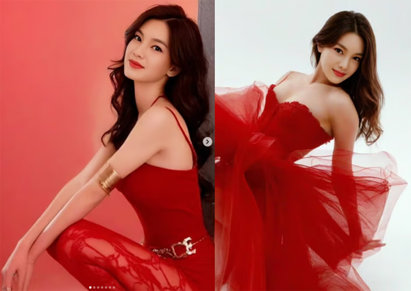 사진 속 정가은은 다양한 스타일의 레드 컬러 드레스를 입고 미모를 뽐내고 있다.