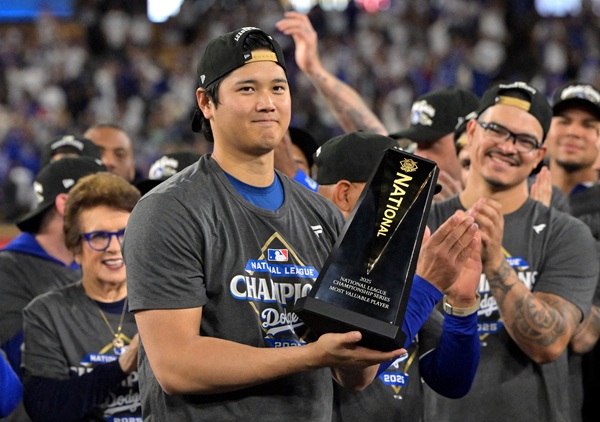 LA 다저스의 오타니 쇼헤이가 2025 메이저리그 내셔널리그 챔피언십시리즈(NLCS) 4차전에서 투타 겸업의 진수를 선보이며 시리즈 MVP에 올랐습니다.