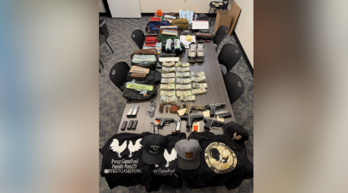 현장에서 56마리의 살아있는 수탉과 24마리의 죽은 새, 그리고 투계용 금속 발톱, 점수표, 격투 링, 현금 2만 8천 달러 등이 압수됐습니다. 수사관들은 이 현장이 조직적으로 운영된 불법 동물 격투장이었다고 밝혔습니다.