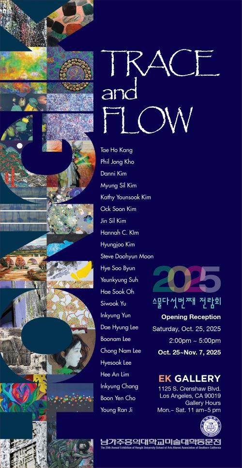 남가주 홍익대학교 미술대학 동문회 (회장: 김병림)가 주최하는 제25회 동문전 ‘Trace & Flow’가 오는 10월 25일부터 11월 7일까지 EK갤러리에서 열린다.