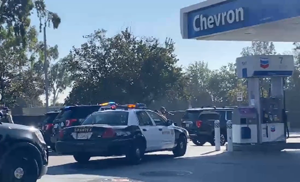 경찰은 용의자가 탄 것으로 추정되는 SUV 차량을 Chevron 주유소에서 정차시키고, 출동한 경찰차 여러 대가 현장을 에워싸며 신속히 대응에 나섰습니다.