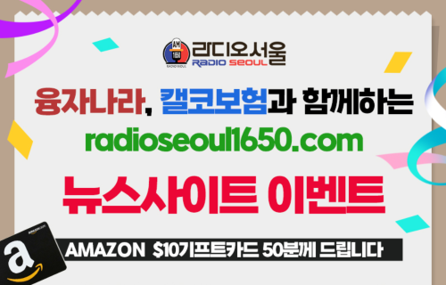 이에 라디오서울은 청취자 및 방문자들의 성원에 감사의 뜻을 전하고자 **‘아마존 기프트카드 증정 이벤트’**를 마련했다. 이번 행사는 융자나라와 캘코보험이 협찬하며, 추첨을 통해 총 50명의 참가자에게 10달러 상당의 아마존 기프트카드를 증정한다.