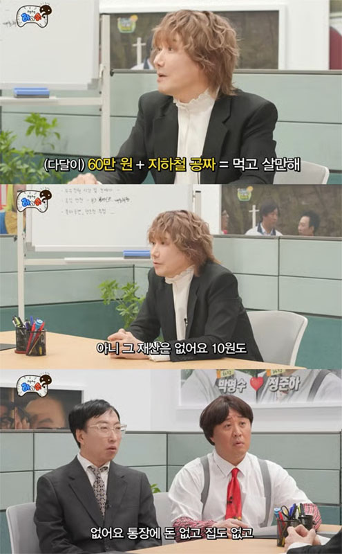 또한 김장훈은 “기부(누적 200억 원)를 많이 하셨는데, 어렵게 사는 연예인으로 ‘근황 올림픽’에 나오더라”라는 언급에 “재산 없다. 10원도 없고, 집도 없다. 근데 어렵진 않다”라고 밝혔다.