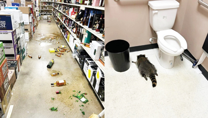 지난달 28일 블랙 프라이데이 샤핑이 한창이던 가운데 애쉬랜드의 ABC 스토어에 숨어들어온 너구리가 진열된 술병을 깨뜨려 마시고 다음날 아침 화장실에서 기절한 상태로 발견됐다.