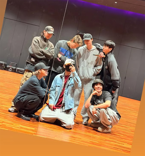 사진 속에는 방탄소년단 일곱 멤버 RM, 진, 슈가, 제이홉, 지민, 뷔, 정국이 하이브 연습실에 모여 춤 연습을 한 듯한 모습이 있었다. 이들은 자유분방한 포즈와 함께 미소짓는 모습으로 이날 모임의 훈훈한 분위기를 전했다.