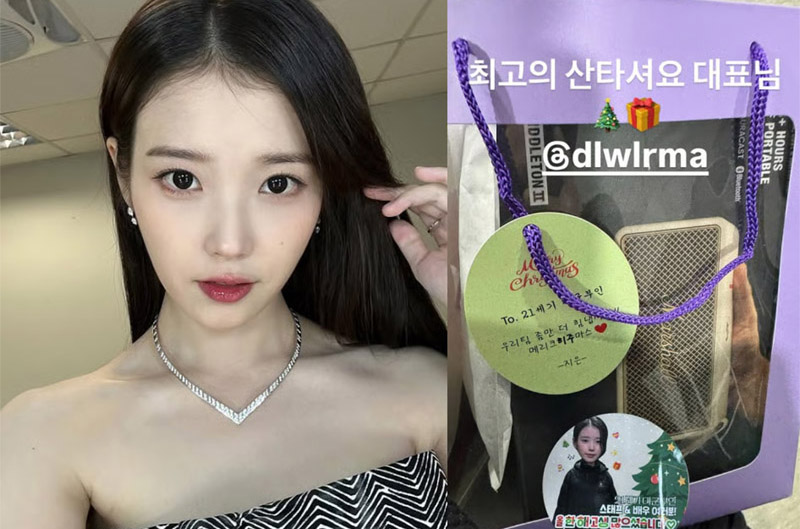 가수 겸 배우 아이유가 드라마 ’21세기 대군부인’ 현장에 크리스마스 선물을 전하며 독려했다.