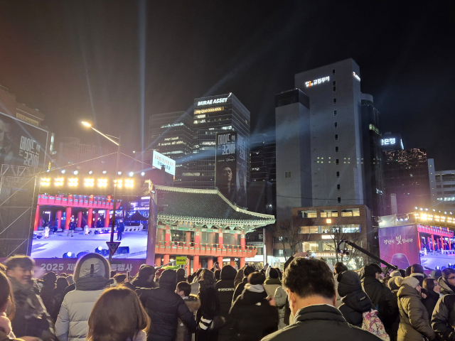 31일 서울의 체감기온은 영하 10도까지 떨어졌지만 보신각 앞은 발 디딜 틈 없이 붐볐다. 타종을 한눈에 볼 수 있는 ‘명당’에는 오후 8시부터 시민들로 가득했다. 오후 11시가 되자 종로1가 사거리까지 인파가 모여 경찰이 통제에 나섰다. 입김이 나오는 매서운 추위에도 시민들은 모자와 목도리, 장갑 등 방한용품으로 무장한 채 새해를 축하하기 위해 발걸음을 옮겼다.