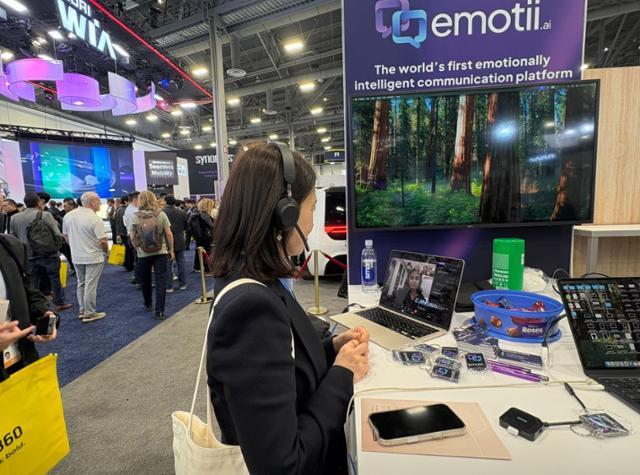 8일 미국 네바다주 라스베이거스컨벤션센터의 이모티 부스는 커다란 모니터와 헤드셋만으로 단출했지만, 그 안에서 구현되는 기술은 강력했습니다. 화면 속 루마니아인 남성이 말을 건네자 헤드셋에서 완벽한 한국어 음성이 흘러나왔습니다. 발화자의 감정과 미묘한 뉘앙스까지 실린 대화를 자연스러운 각자의 언어로 주고받을 수 있었습니다.