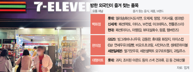 한국을 찾은 외국인 관광객들이 면세점 대신 편의점과 대형마트, 백화점 등을 찾으며 K패션과 K푸드, K뷰티 상품을 쓸어가고 있다.