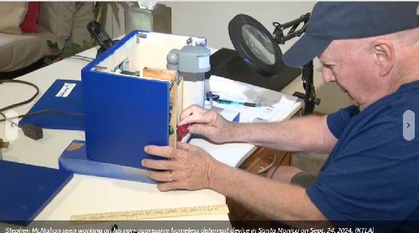 산타모니카의 한 주민이 자신의 동네에서 증가하는 노숙자 문제에 대응하기 위해 특별한 장치를 개발해 화제가 되고 있습니다. 수십 년간 이 지역에 거주해온 스티븐 맥마혼(Stephen McMahon) 씨는 ‘블루 처퍼(Blue Chirper)’라는 이름의 동작 감지 장치를 만들어냈습니다.
