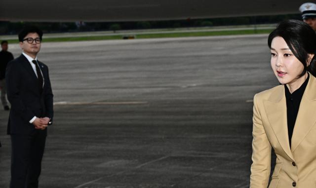 박 원내대표는 이날 국회에서 열린 정책조정회의에서 “‘청탁을 한 사람은 유죄, 청탁을 받은 사람은 무죄’라고 한다면 어떤 국민도 공정하다고 생각하지 않을 것”이라며 “앞서 수사심의위원회(수심위)가 김 여사에 대해 불기소 권고를 한 것이 얼마나 엉터리였는지 드러났다”고 주장했다. 이어 “대통령 부부에게만 한없이 너그러운 비뚤어진 검찰을 국민들은 절대 용서하지 않을 것”이라며 김 여사 기소를 거듭 요구했다.
