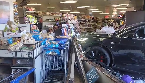 치노에서 테슬라 차량이 상점 유리창을 뚫고 돌진하는 사고가 발생했습니다.