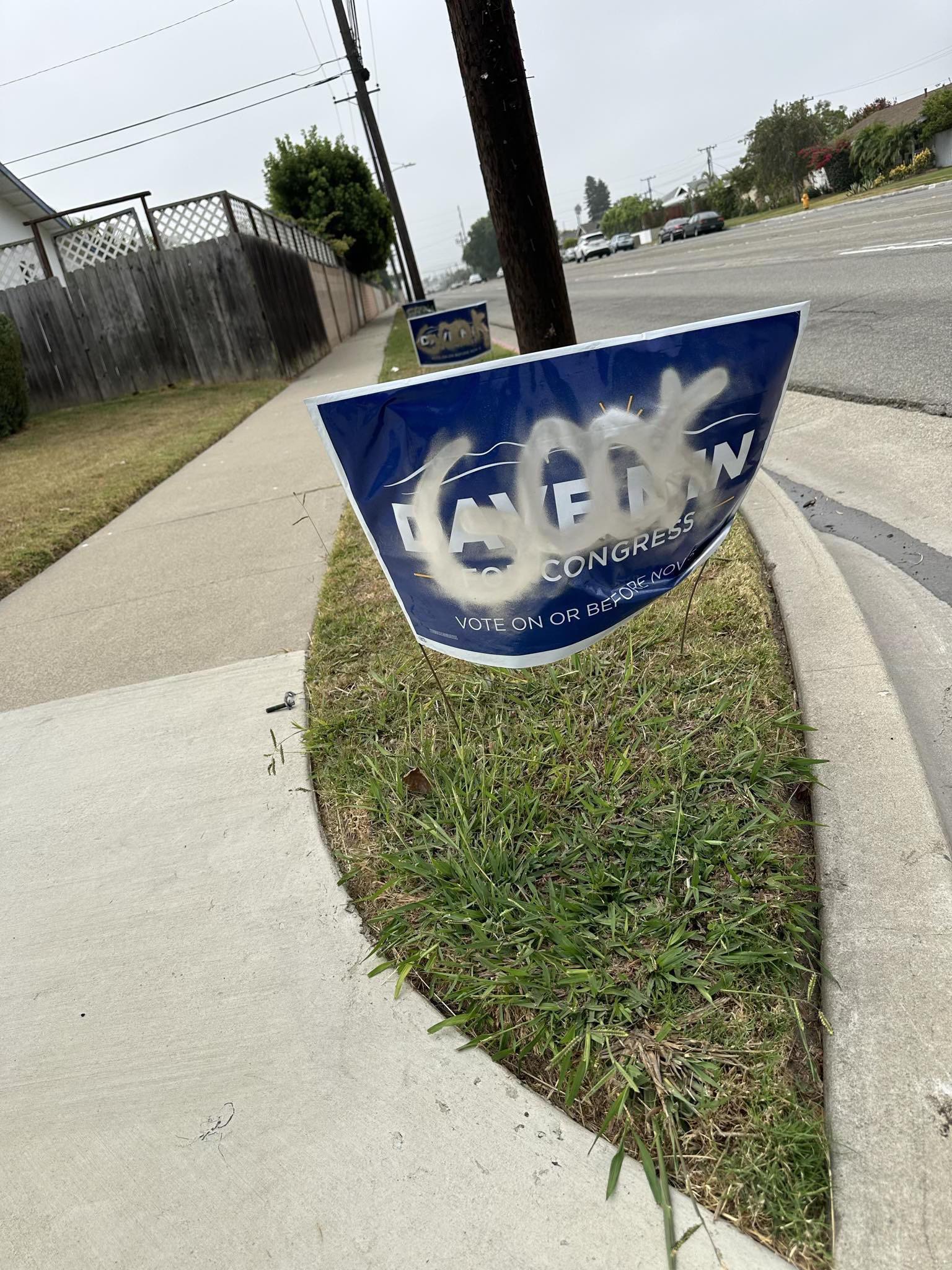 연방 하원47지구에 도전하는 데이브 민 가주 상원의원의 선거 홍보물이 아시아계 비해 욕설로 훼손되는 일이 발생했습니다