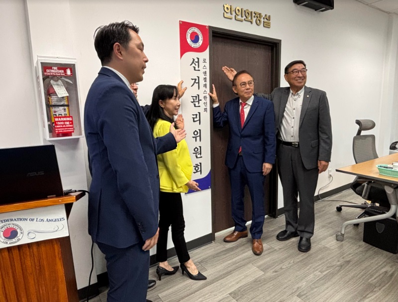 이 날 선관위측에서는 선거 위원장인 김용호 남가주 한인외식업 회장, 부위원장인 진최 한인회 이사 감사역할을 맡은 김준배 광복회 서남부지회 회장, 재무역할을 맡은 임동묵 한인회 이사와 최순환 한인회 이사등이 참석했습니다