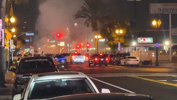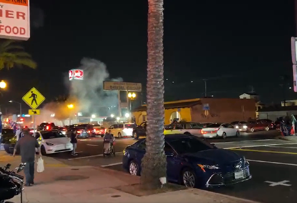KTLA가 입수한 영상에 따르면, 토요일 밤 9시 이후 휘티어 블러바드와 아틀란틱 블러바드 교차로에서 폭죽이 터지고 차량들이 번아웃(급제동 시위)을 하는 모습이 포착됐다.