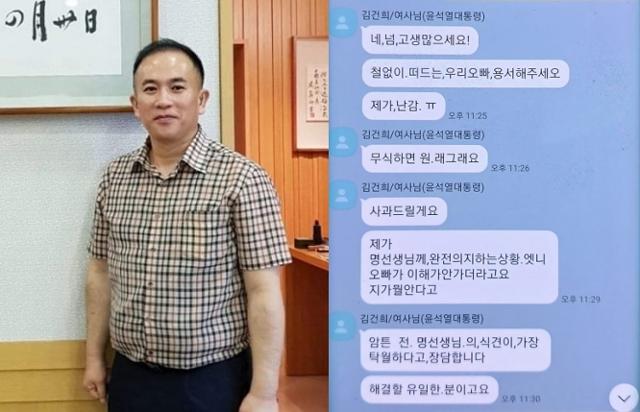 명씨는 29일 한국일보와 만나 ‘윤 대통령 부부는 어떤 존재인가’라는 질문에 “엄청나게 감사하고 고마운 사람들”이라며 “창원 지역에서 주로 활동하던 자신에게 대선 경선이라는 무대에서 역량을 펼칠 수 있는 기회를 줬기 때문”이라고 말했다. ‘대선 경선 당시 윤 대통령 부부와 얼마나 연락을 주고받았느냐’는 질문에는 “그림자처럼 살았지만 대선 경선 때는 거의 매일 통화를 했다”며 “오늘 해야 할 것 등에 대해서 말씀을 드렸다”고 밝혔다.