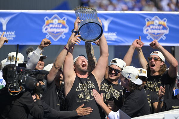 이날 다저스의 우승을 축하하는 야외 퍼레이드는 오전 11시께 시작됐다.