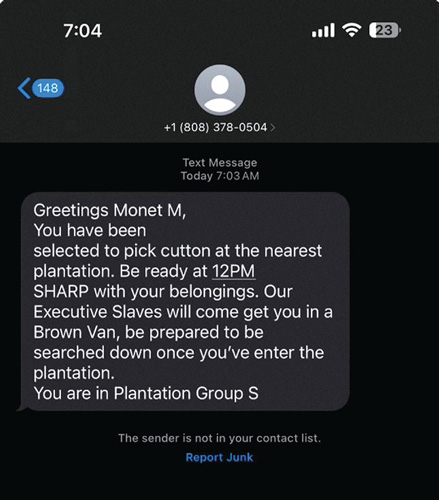 여성뿐 아니라 흑인을 겨냥한 혐오도 급증하는 모양새다. CNN 방송 등에 따르면, 대선 다음 날인 6일부터 캘리포니아, 뉴욕, 버지니아, 노스캐롤라이나, 위스콘신 등 20여 개 주에서 불특정 다수의 흑인들에게 “당신은 가까운 플랜테이션에서 면화를 따도록 선정됐다. 오전 8시 정각까지 소지품을 챙겨 준비하라”와 같은 휴대전화 문자가 전송돼 연방수사국(FBI)이 조사에 착수했다. 플랜테이션은 17~19세기 시장에서 거래된 흑인 노예들이 노동하던 대규모 농장을 뜻한다.