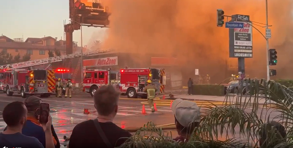 16일 오후 4시 30분경(현지시간) 로스앤젤레스 할리우드 노스 하이랜드 애비뉴 1306번지의 자동차 부품 판매점 ‘오토존’에서 대형 화재가 발생했다.