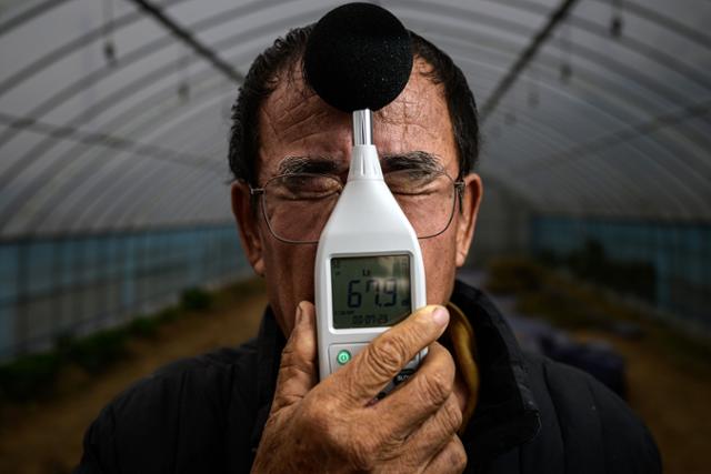 수개월 동안 북한의 대남 소음방송에 시달려온 접경지역 주민들의 얼굴에 ‘소리 고문’의 흔적이 고스란히 남았다. ‘들리는 표정’과 ‘보이는 소음’이 상존하는 그들의 모습을 소음계와 함께 기록했다. 사진은 안효철(66) 강화군 송해면 당산리 이장. 안 이장은 그간의 심경을 묻는 질문에 "여기 사는 죄다. 일찍이 우리 아버지가 이 땅에 지게 끈을 풀어놓고 살기 시작한 죄다."라고 답했다. 그는 현재 4번 뇌신경이 스트레스 장애를 일으키며 양쪽 시력이 모두 심각하게 저하된 상태다. 강화=하상윤 기자이미지 확대보기