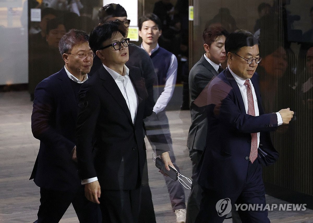 심각한 표정의 한동훈 대표 (서울=연합뉴스) 류영석 기자 = 국민의힘 한동훈 대표가 6일 서울 여의도 국회에서 의원총회 도중 회의장을 잠시 나와 이동하고 있다. 2024.12.6 ondol@yna.co.kr
