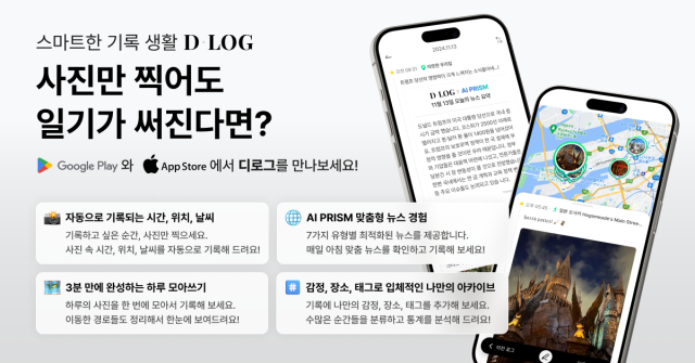 디로그(D·LOG)는 AI 기반 라이프로깅 플랫폼이다. 사진을 한 장만 올려도 인공지능(AI)이 촬영 시간부터 위치, 날씨까지 자동으로 기록해준다.