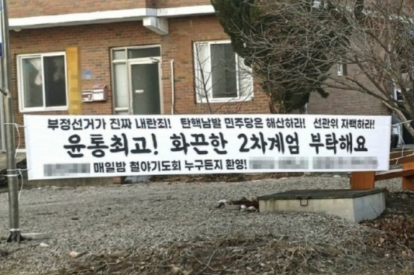 센터에 따르면 A씨는 지난 8일 예배 후 토크쇼에서 “제2, 제3의 계엄을 하더라도 반국가 세력을 완전히 척결해야 한다”고 주장했다. 또한 경북 지역의 한 교회는 ‘부정선거가 진짜 내란죄! 탄핵 남발 민주당은 해산하라! 선관위 자백하라! 윤통 최고! 화끈한 2차 계엄 부탁해요’라는 현수막을 게시했다.