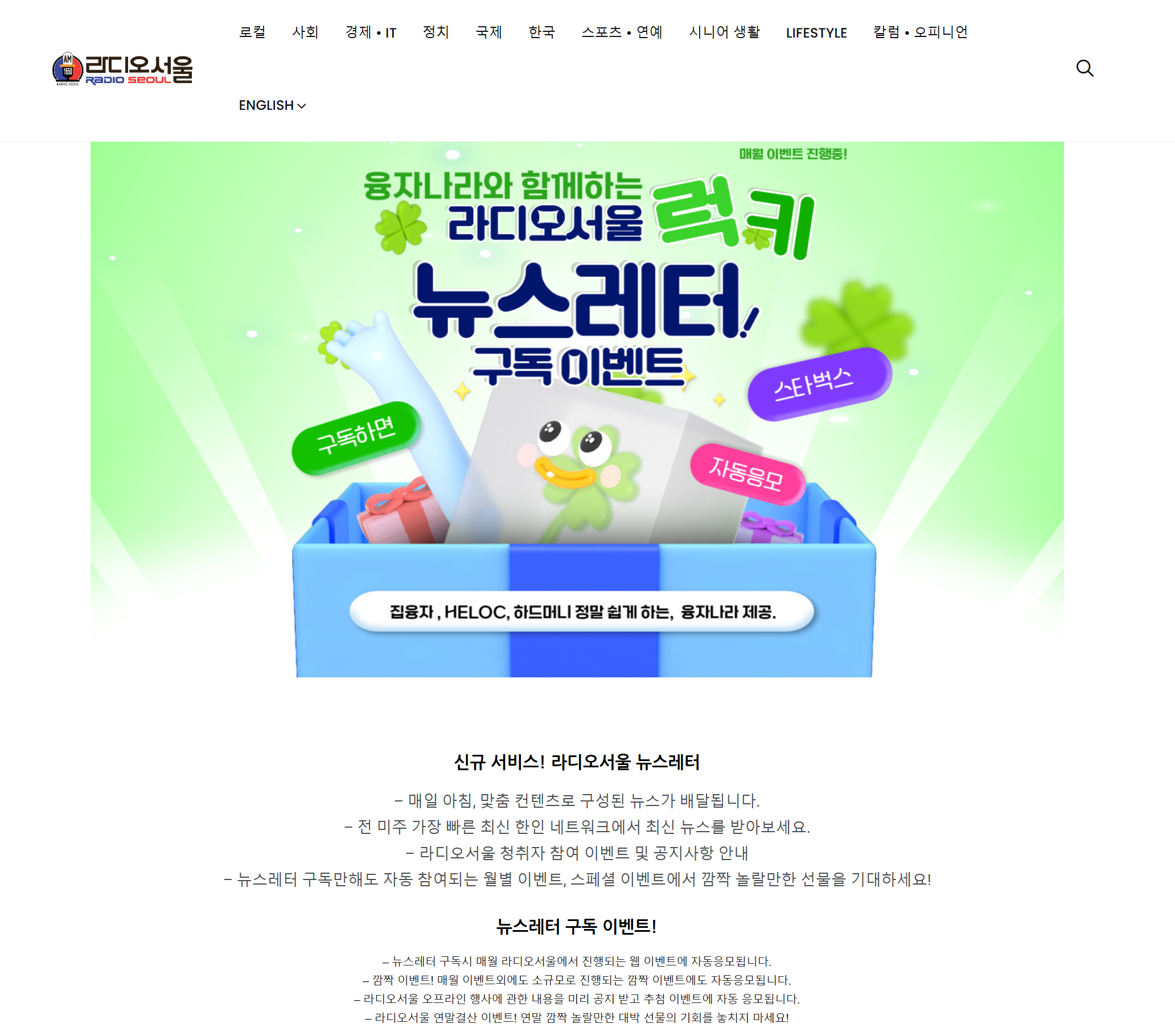 새해에도 라디오 서울 뉴스레터와 함께 스타벅스 기프트 카드도 받는 기회를 놓치지 마시기 바랍니다.