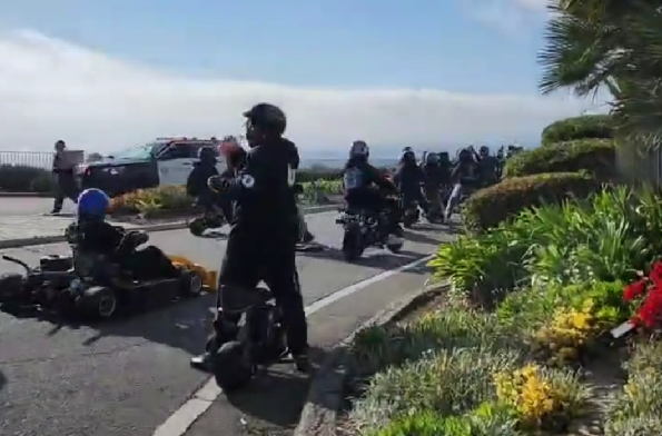 팔로스 베르데스 드라이브 사우스와 라 로톤다 드라이브 교차로 인근에서 대규모 오토바이 무리가 도로를 막아 교통 혼잡을 야기했다는 신고가 접수되었습니다.