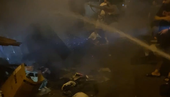 강바닥에는 노숙자 캠프가 산재해 있으며, 화재가 발생한 지역 주변에는 비즈니스 업소들이 있습니다.