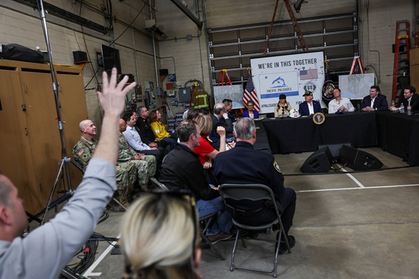 도널드 트럼프 대통령이 지난해 허리케인 피해를 평가하기 위해 노스캐롤라이나를 방문한 같은 날, 캘리포니아 로스앤젤레스에서는 팰리세이드 지역의 산불 피해자들을 만나고, 현장 대응자들과 직접 피해를 입은 주민들과 이야기를 나누는 등 바쁜 일정을 소화했다.