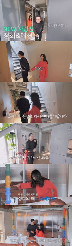 이후 서정희는 한참 집 소개 중인 남자친구 김태현의 뒤에 꼭 붙어 기웃거리거나 공중 헤엄 시범을 보이는 등 애교 만점인 모습을 보였다. 마치 세상에 두 사람만이 존재하는 듯한 서정희, 김태현의 핑크빛 기류가 앞으로의 이야기를 더욱 궁금하게 만든다.