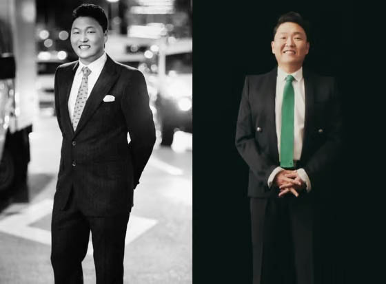 사진은 2006년과 2025년 싸이의 근황 모습인 듯 보인다. 특히 멀끔한 정장과 함께 볼살이 줄어든 싸이의 모습에 팬들의 반응이 다양하게 나오고 있다.