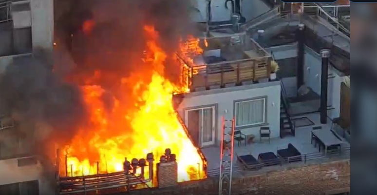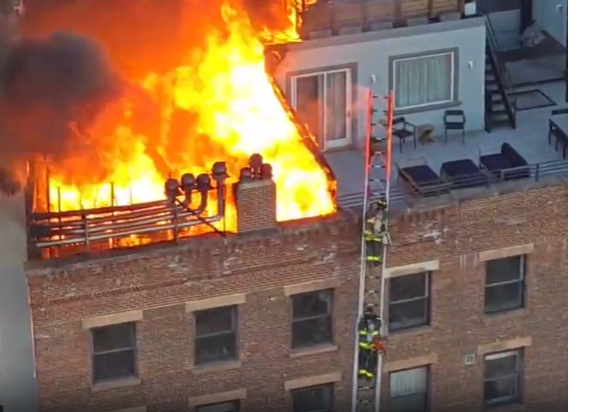 - 오전 6시 58분경 168 뱅크 스트리트 다층 주거용 건물 옥상에서 화재 발생
