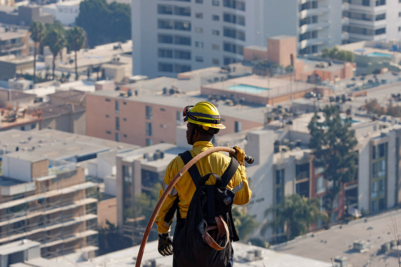그 사고로 LA 소방관 9명이 부상을 입었으며, 그중 2명은 중상을 입었습니다.