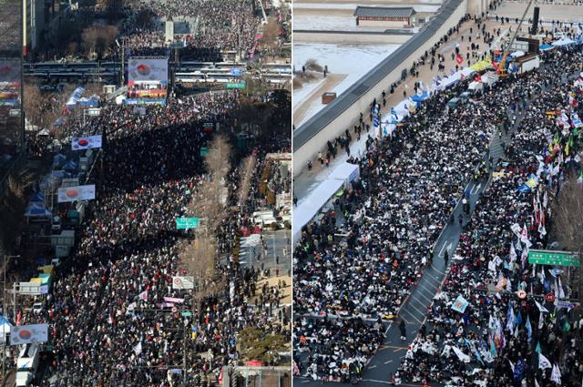 여야가 3·1절 서울 도심에서 윤석열 대통령 탄핵 찬성과 반대를 주장하는 대규모 집회에 총출동한다. 헌법재판소의 윤 대통령 탄핵 심판이 카운트다운에 돌입한 가운데 장외 여론전에 막판 총력을 쏟아부어 헌재를 압박하려는 전략이다. 국민통합에 앞장서야 할 정치권이 탄핵 찬반 세 대결에 골몰하며 국론 분열을 부추긴다는 지적이 나온다. 조기 대선을 앞두고 강성 지지층과 중도층 양쪽의 눈치를 볼 수밖에 없는 국민의힘 대선주자들 사이에선 딜레마도 감지된다.