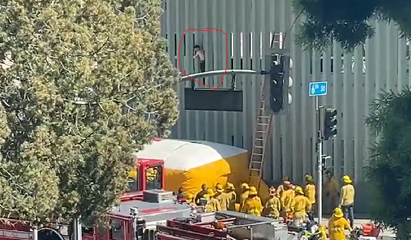 - 오전 11시 3분경 소방관들이 주변 도로를 봉쇄하고 사다리 설치