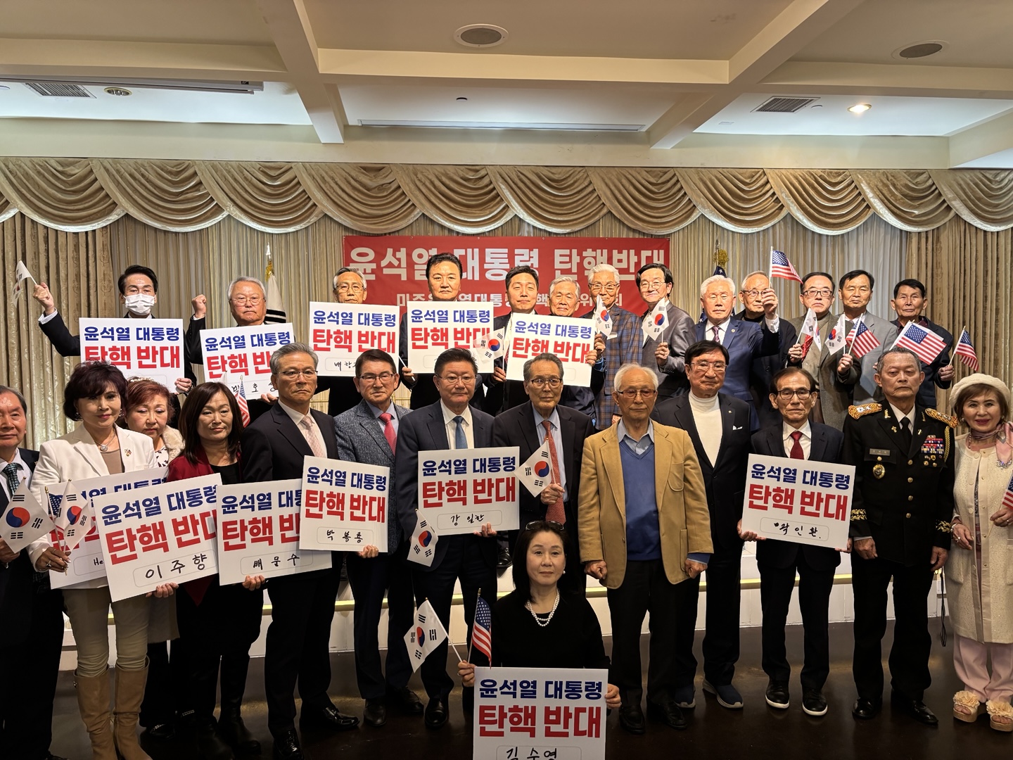이날 열린 윤석열 대통령 탄핵 반대 행사에는 LA의 한인 전현직 단체장등을 비롯해 시애틀 등 미주 각지에서 온 한인 단체장 50여 명이 참석했습니다