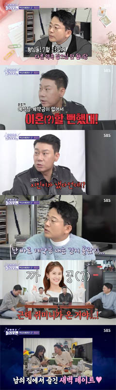 이를 듣던 이상민은 “김준호가 예식장 계약금이 없어서 이혼할 뻔했다고 한다”며 “김준호가 계약금이 없어서 도망을 갔고 김지민이 돈을 냈다는 기사를 봤다”고 폭로했다.