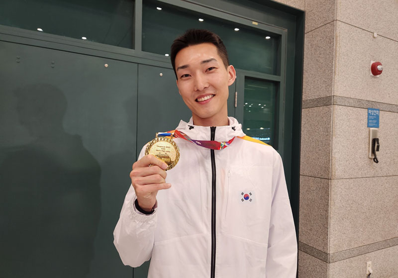 ‘스마일 점퍼’ 우상혁(28·용인시청)이 빛나는 2025 세계실내육상선수권대회 금메달을 목에 걸고 귀국했다.
