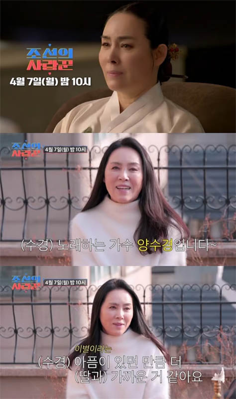제작진 앞에서 양수경은 “아들 같고 애인 같은 딸인데 저랑 좀 더 같이 오래 있을 줄 알았다”며 싱숭생숭한 마음을 전했다. 또 “친밀한 만큼 어려운 시간도 길었다. 같은 여자로서 느끼는, 그런 아픔과 기쁨이 남들보단 좀 진한 것 같다”고 딸 채영과의 관계를 소개했다.