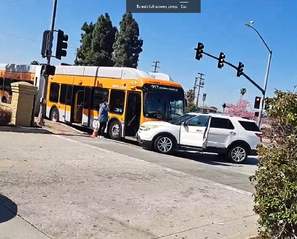 오늘 오전 10시 29분, 로스앤젤레스의 2876 W Imperial Hwy 근처에서 메트로 버스가 연루된 차량 충돌 사고가 발생했습니다.