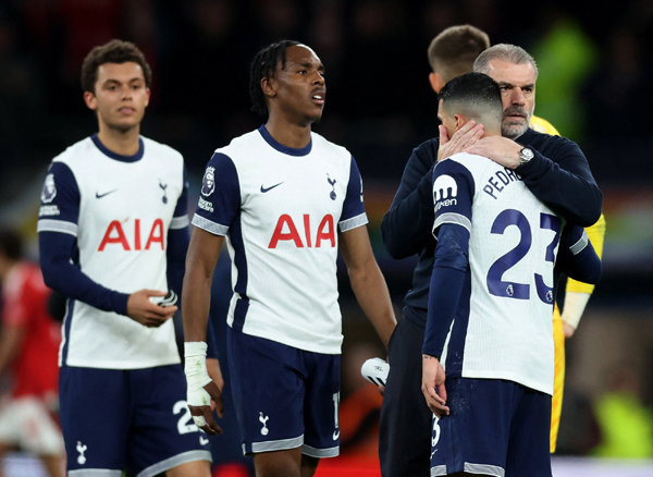 토트넘은 22일(한국시간) 영국 런던의 토트넘 홋스퍼 스타디움에서 열린 노팅엄과 2024-2025 EPL 33라운드 홈 경기에서 1-2로 졌다.