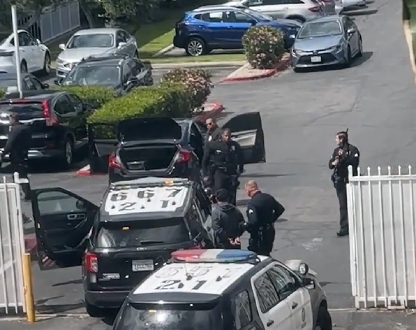 캘리포니아 우드랜드 힐스의 한 아파트 단지에서 권총으로 여성을 위협한 남성이 경찰에 의해 신속하게 체포됐다.