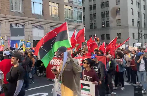 뉴욕에서는 약 150명의 시위대가 유니언 스퀘어에서 뉴욕 공립 도서관까지 20블록을 행진하며 “이민자 추방 중단”과 “팔레스타인 해방”을 외쳤다. 참가자들은 팔레스타인 국기와 함께 다양한 인권·노동권 관련 팻말을 들고 행진했다.