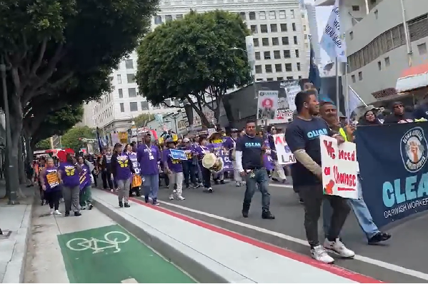 로스앤젤레스(LA)에서도 수천 명이 시청 앞에 모여 “노동자에게 힘을! 이민자에게 힘을! 노조에 힘을!”을 외치며 트럼프 행정부의 반(反)노동·반이민 정책에 항의했다. 필리핀노동자센터 대표 아킬리나 소리아노 베르소자는 “진짜 기생충은 미국의 제도를 파괴하는 억만장자들”이라고 비판했다.