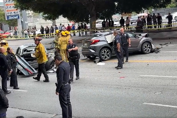 경찰없는 주말 엘에이 시내는 굉음과 난폭운전으로 엉망이다.